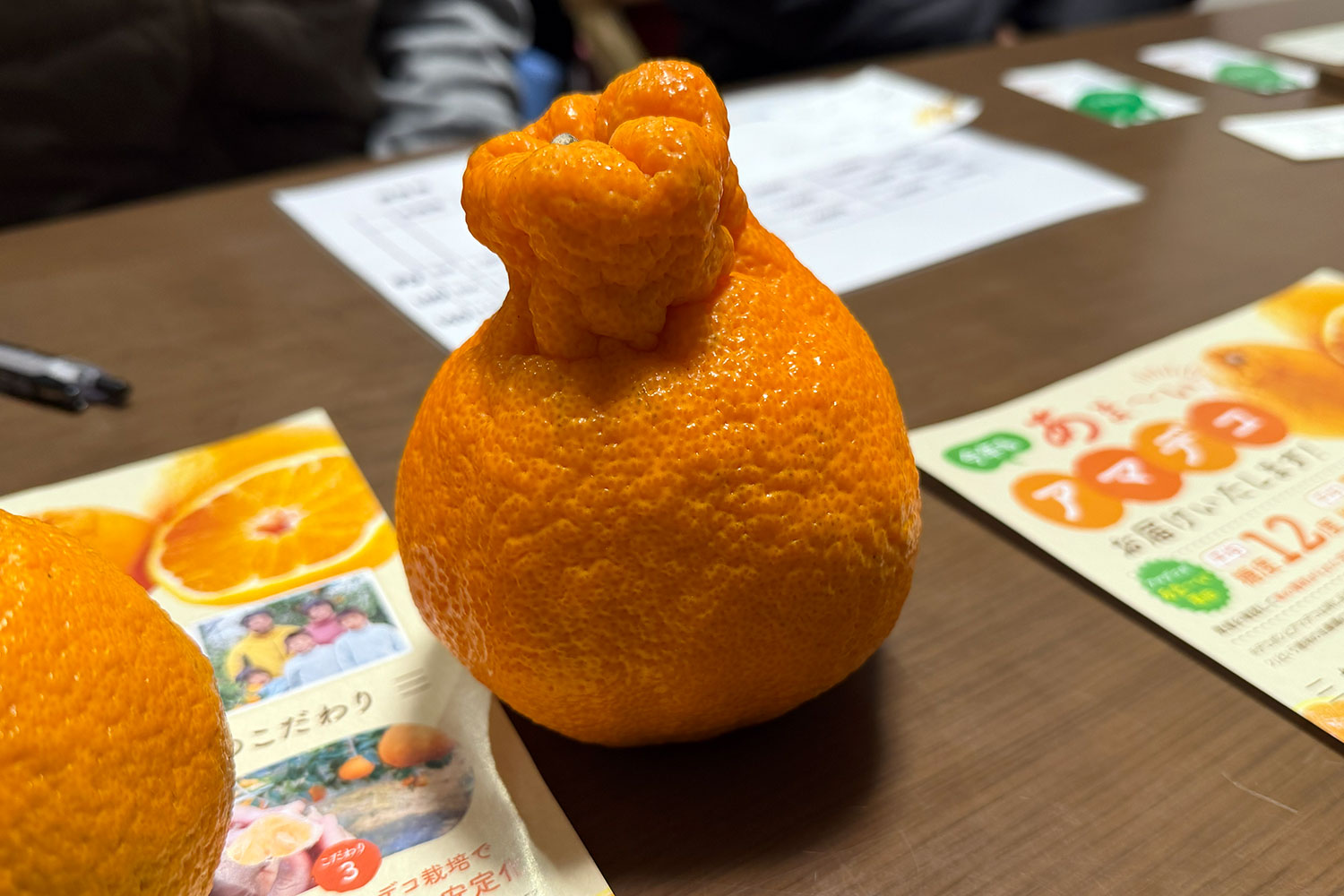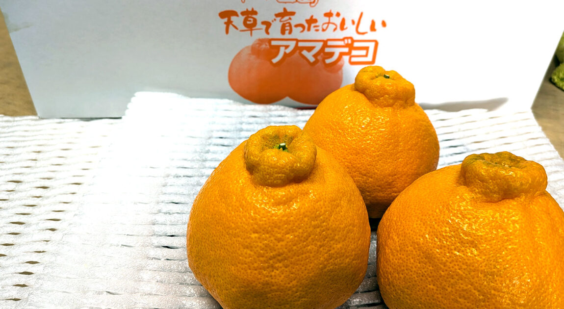 「アマデコ」は熊本県天草市の倉田農園で育てられた不知火(しらぬい)のブランド名で、デコポンと同じ品種です。