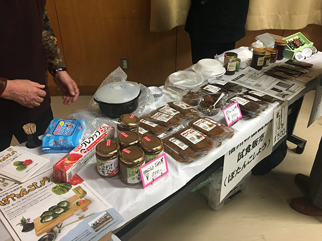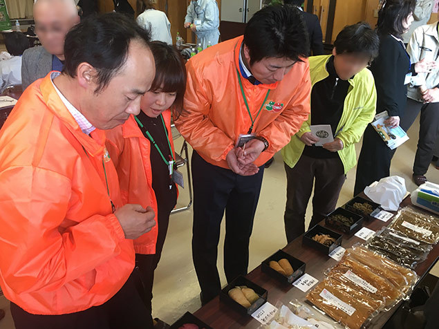 休憩時間などには生産者・加工グループの方々の展示する加工品などの試食も行われ、様々な商材についてお話をお聞きしました。