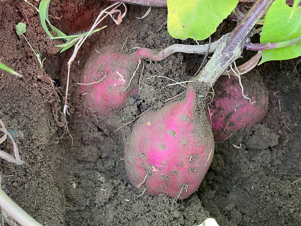 9月30日に収穫をし始め、だいたい20cmくらいのさつまいも(紅あずま)が獲れました。