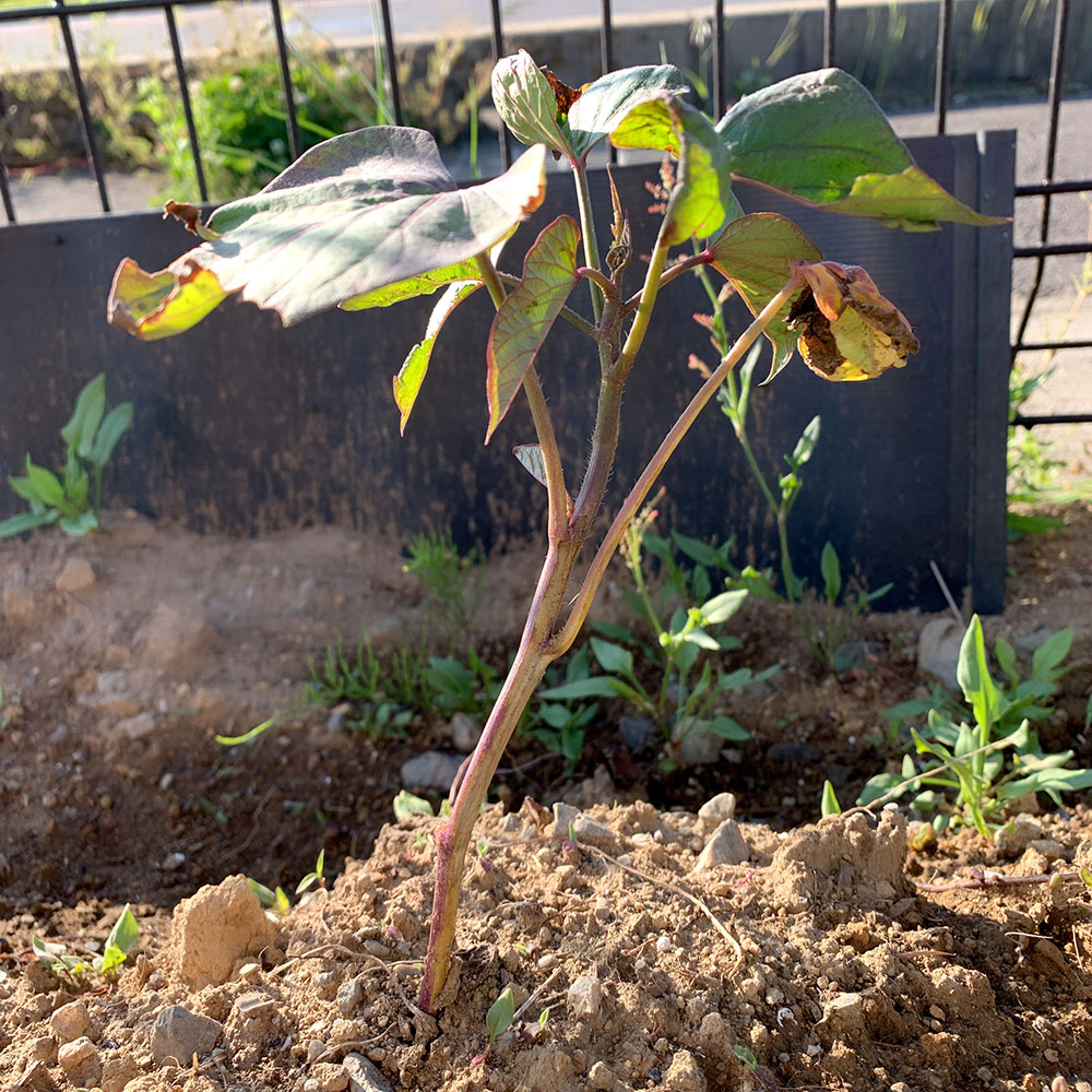 植えたのはさつまいもの「紅あずま」と言う品種。最終的に豚汁を作ることが目的です!